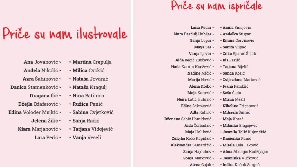 Okupili su 45 žena iz različitih sfera djelovanja iz BiH, sve ostvarene na nekom planu i sa značajnim rezultatima, uključujući i međunarodne projekte. One su u knjizi podijelile svoje lične priče o trenucima kada su bile daleko od savršenstva i upravo tu pronašle snagu.