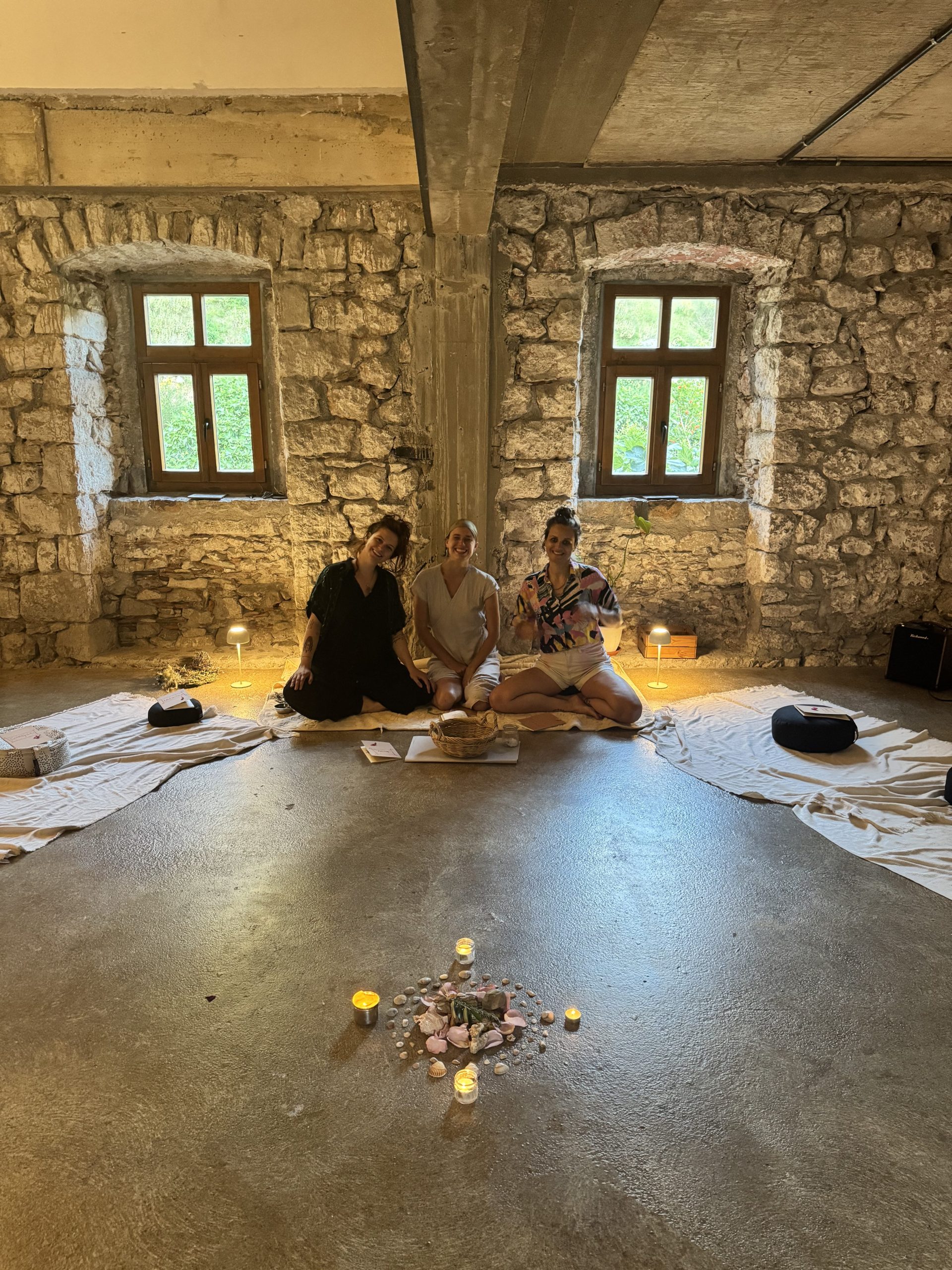 Paralelno, kroz retreatove i rad sa ženama, istražuje kolektivni prostor. Okupljanja koja vodi oslanjaju se na tijelo, kreativne procese i strukturirani dijalog. Taj rad nije odvojen od profesionalnog svijeta – on je njegov temelj.