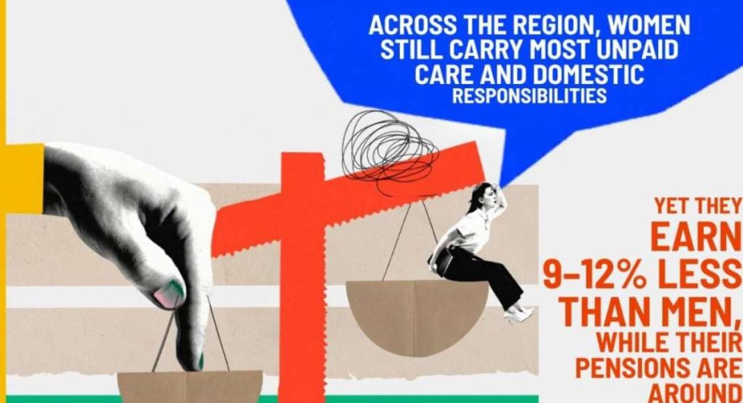 Također, razlike u platama i dugoročna finansijska nesigurnost dodatno otežavaju postojeće probleme. Procjenjuje se da je razlika u platama žena i muškaraca u regionu između devet i 12 posto, a ove brojke su često zasjenjene visokim stopama neformalnog rada i ograničenom transparentnošću plata. Prema analizi koju su zajedno radili Razvojni program Ujedinjenih nacija i Vijeće za regionalnu saradnju, penzije žena u regionu su oko 40 posto manje od muškaraca, što ukazuje na godine niskih plata, prekida karijera i neformalnog rada.